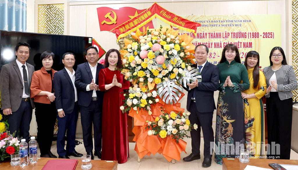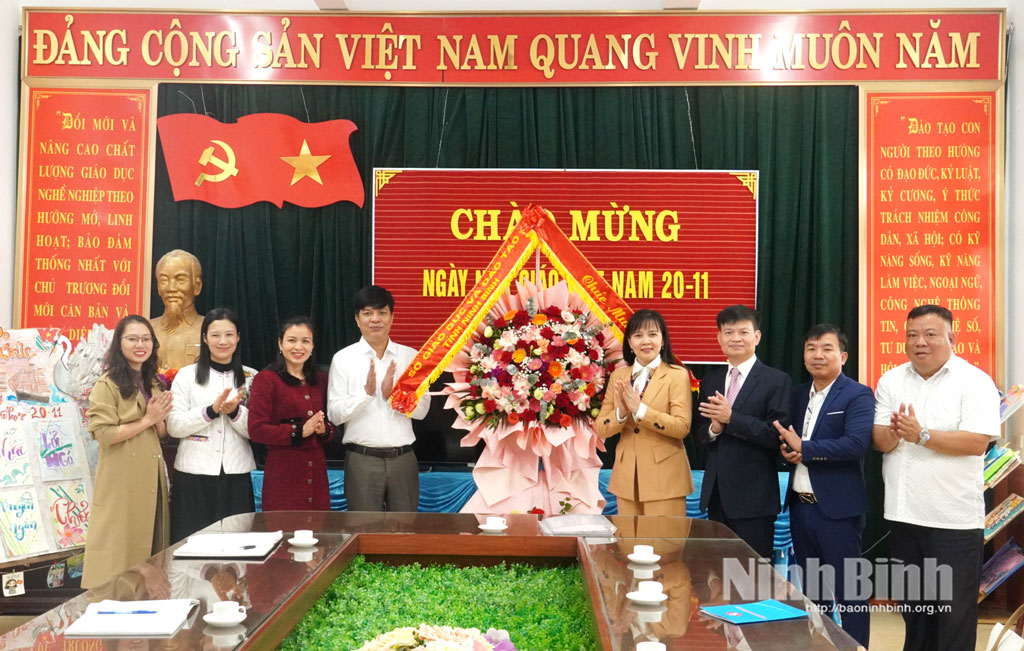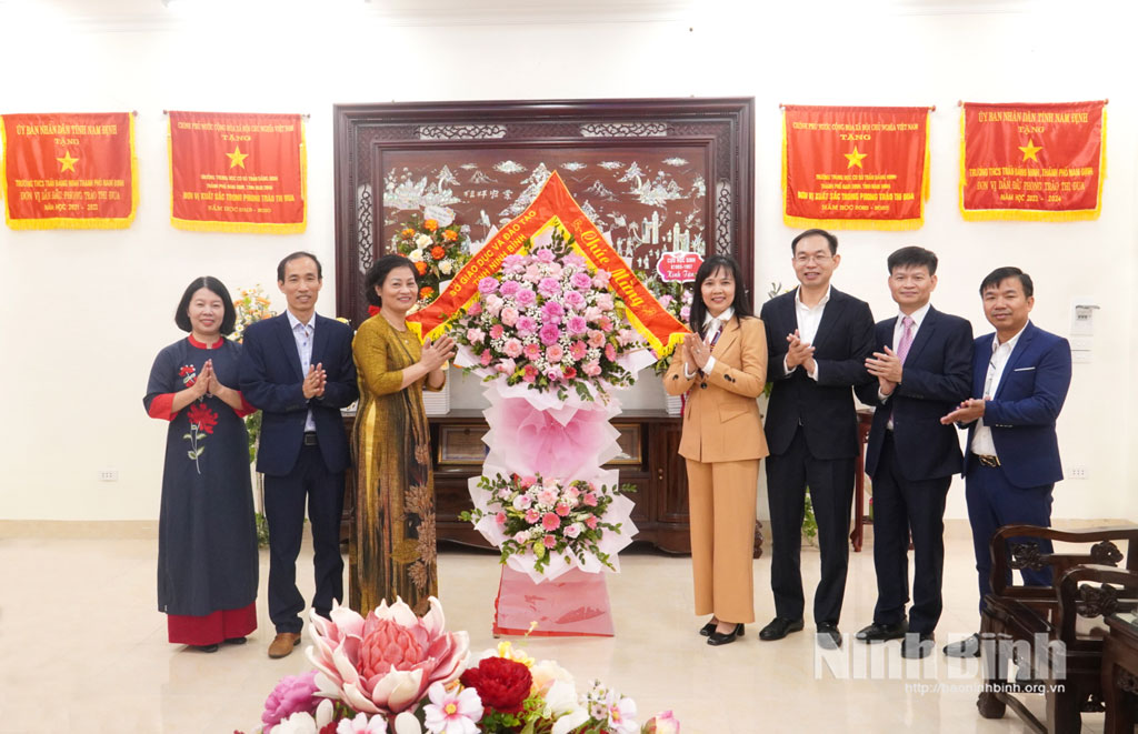 Đoàn đại biểu Sở Giáo dục và Đào tạo tặng hoa chúc mừng Trường THCS Trần Đăng Ninh (phường Nam Định) nhân Ngày Nhà giáo Việt Nam.
