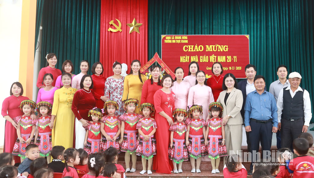 * Đồng chí Trần Thị Định, Tỉnh ủy viên, Bí thư Đảng ủy, Chủ tịch HĐND xã Quang Hưng thăm, chúc mừng các thầy, cô giáo Trường Mầm non Trực Khang, xã Quang Hưng nhân kỷ niệm 43 năm Ngày Nhà giáo Việt Nam.