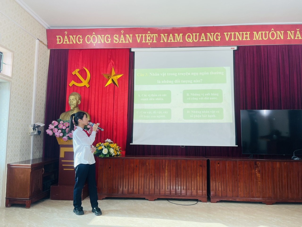 Các bạn học sinh tham dự đã được đến với thế giới của truyện ngụ ngôn qua hoạt động Khám phá tri thức . Mỗi câu hỏi là đều là những kiến thức vô cùng bổ ích có liên quan đến nội dung bài học mà các bạn đang được học. Không chỉ là những câu chuyện sinh động, đó còn là cánh cửa mở ra những bài học quý giá mà cha ông ta đã đúc kết từ hàng nghìn đời nay.