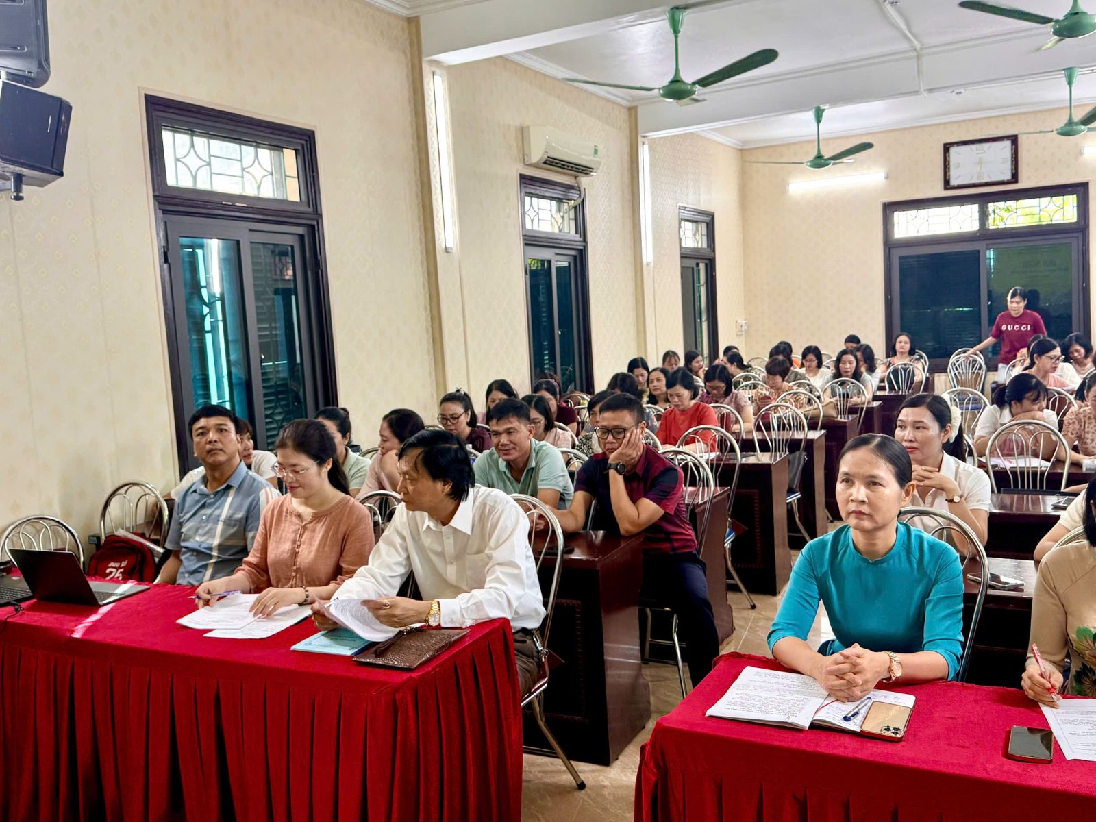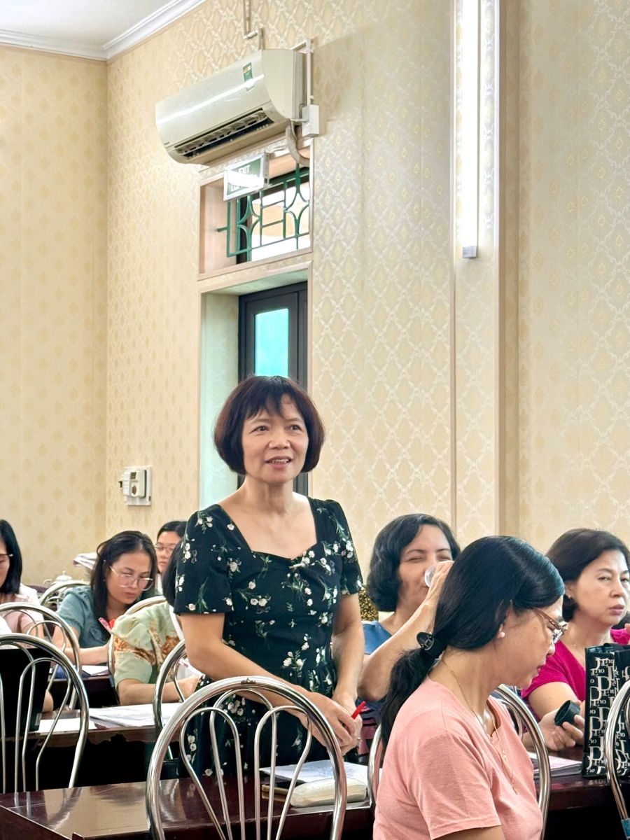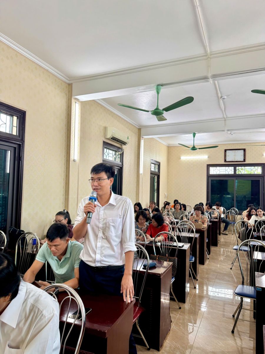 Hội nghị còn được lắng nghe một số tham luận rất bổ ích nhằm thúc đẩy sự phát triển giáo dục toàn diện, đặc biệt là nâng cao trình độ chuyên môn cho giáo viên và học sinh đối với những môn học có tính chất xu hướng và đậm chất đổi mới theo chương trình GDPT 2018. Tiêu biểu là tham luận của đồng chí Đặng Thị Thoan- Gv Tổ Văn – Sử với chủ đề “Một số biện pháp nâng cao chất lượng công tác chủ nhiệm của giáo viên trong giai đoạn hiện nay” và Tham luận của đồng chí Vũ Thị Thim – Tổ phó tổ Toán – Tin với chủ đề: “Những định hướng và giải pháp chính trong việc ôn thi tuyển sinh THPT năm 2026 theo chương trình GDPT 2018”.