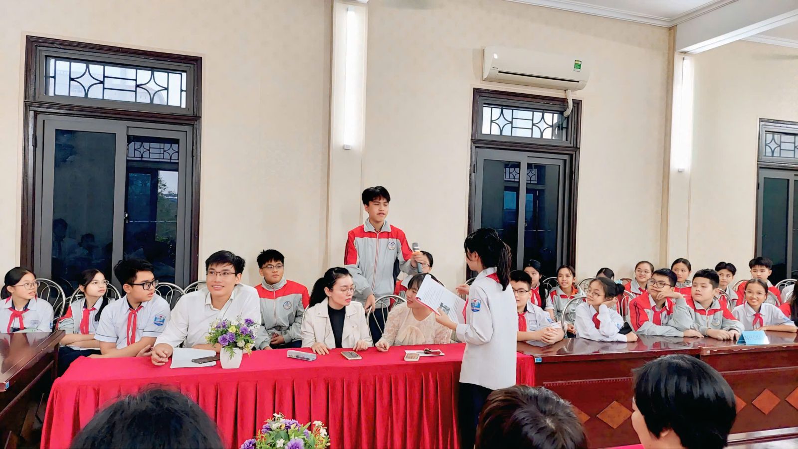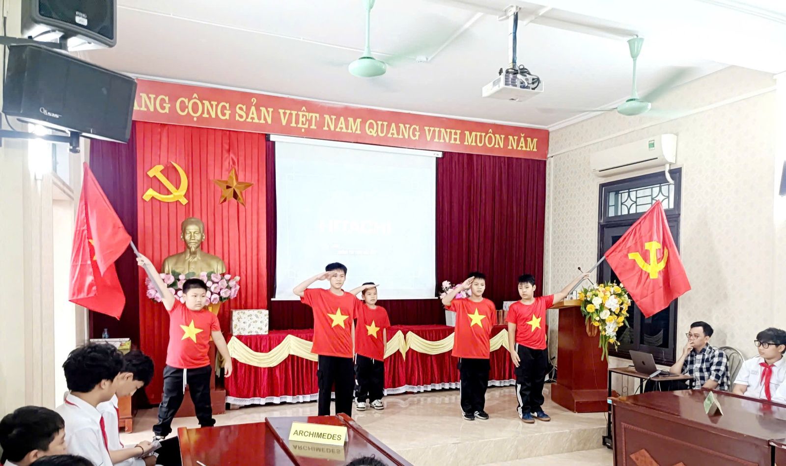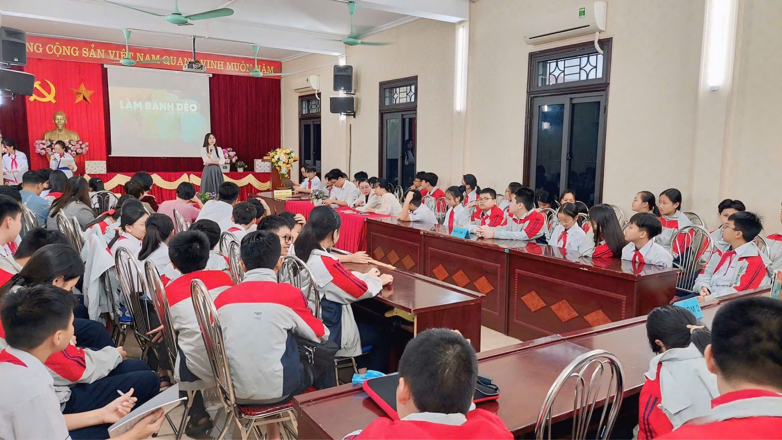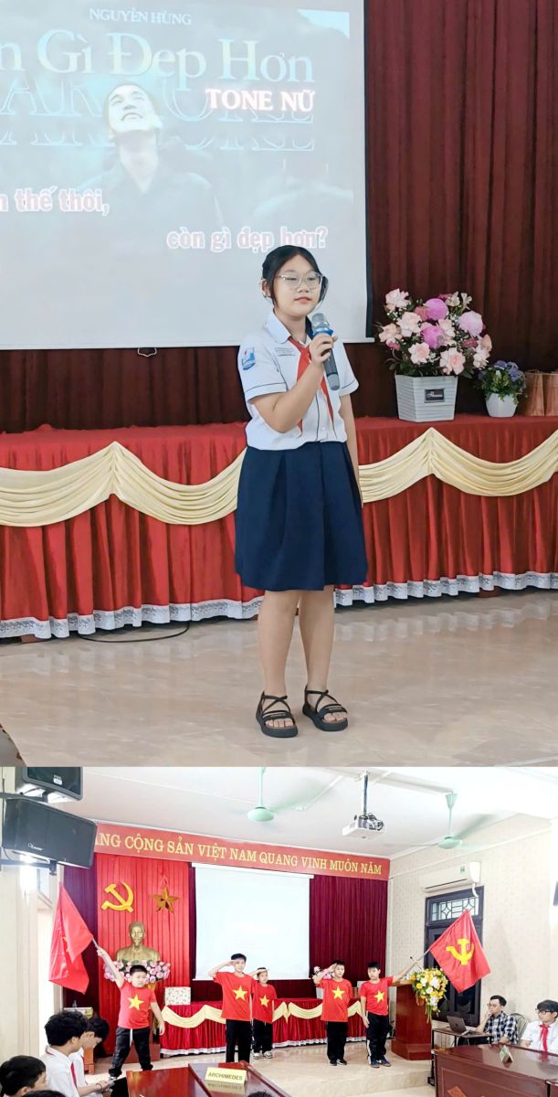 Chương trình mở đầu bằng hai tiết mục văn nghệ đặc sắc: bài hát “Còn gì đẹp hơn” và điệu nhảy sôi động “ Khát vọng tuổi trẻ” của các em học sinh khối 6, mang đến bầu không khí hứng khởi cho toàn hội trường.