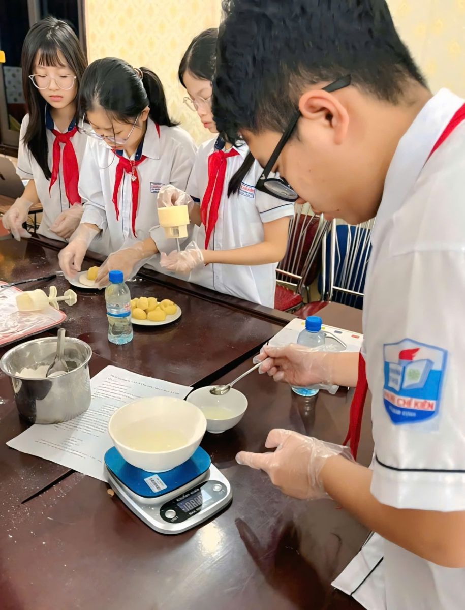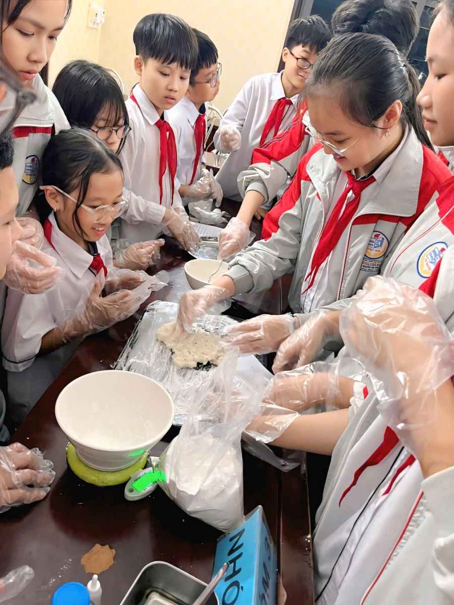 Mỗi chiếc bánh được làm ra là sự hòa quyện của khéo léo, tỉ mỉ, trí tuệ và cái tâm trong từng công đoạn. Không chỉ là làm bánh, mà còn là bài học STEAM sống động, nơi các em được vận dụng kiến thức Khoa học, Công nghệ, Kỹ thuật, Nghệ thuật và Toán học để sáng tạo nên những chiếc bánh dẻo xinh xắn, thơm ngon, gửi gắm tình yêu thương và tinh thần sẻ chia.