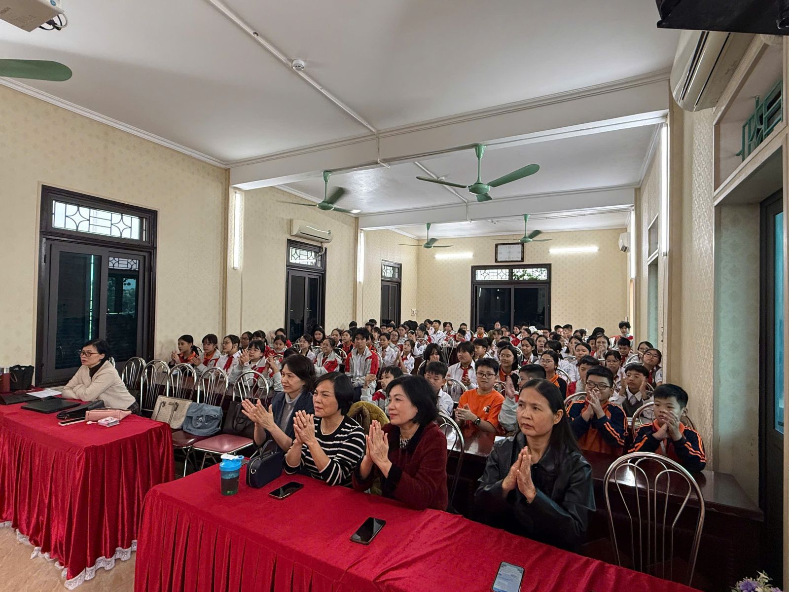 Các thầy cô giáo trong Ban giám hiệu về dự buổi sinh hoạt câu lạc bộ